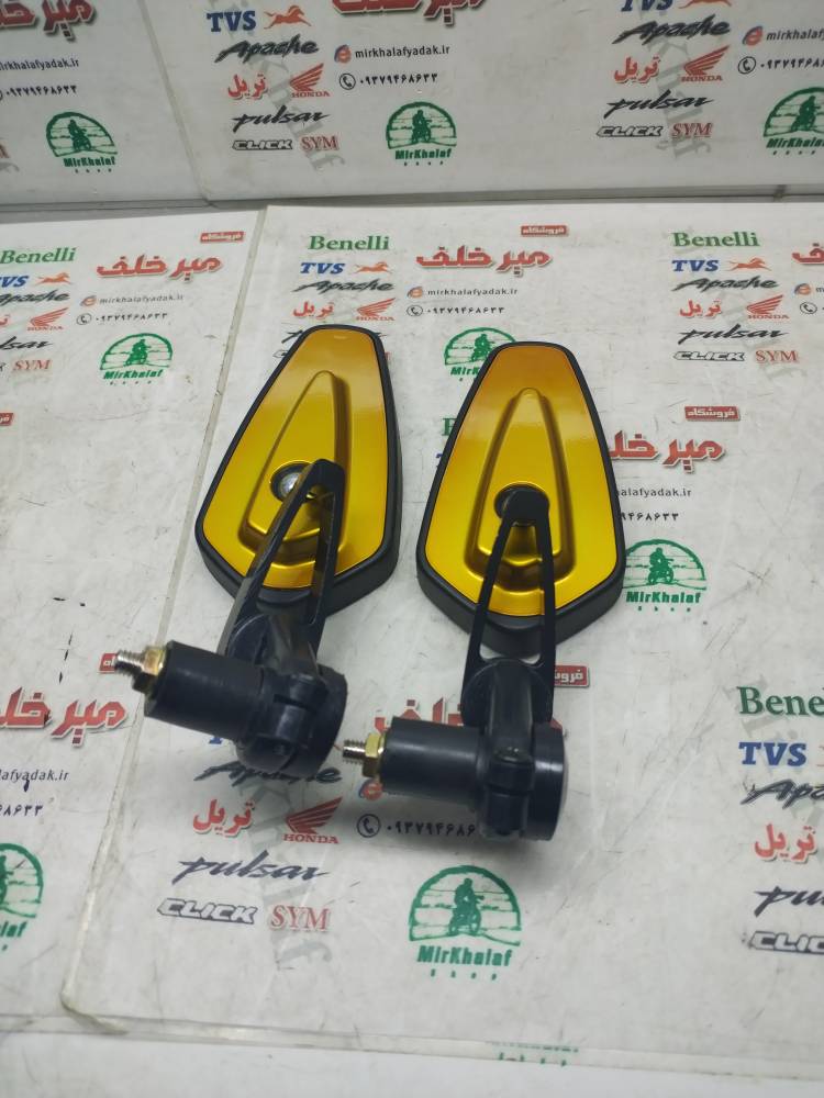 خانه برند SYM گالکسی (گلکسی) NA و NH اینه فلزی اسپرت سر فرمان رنتال cnc درجه 1 زرد طلایی (جفتی)