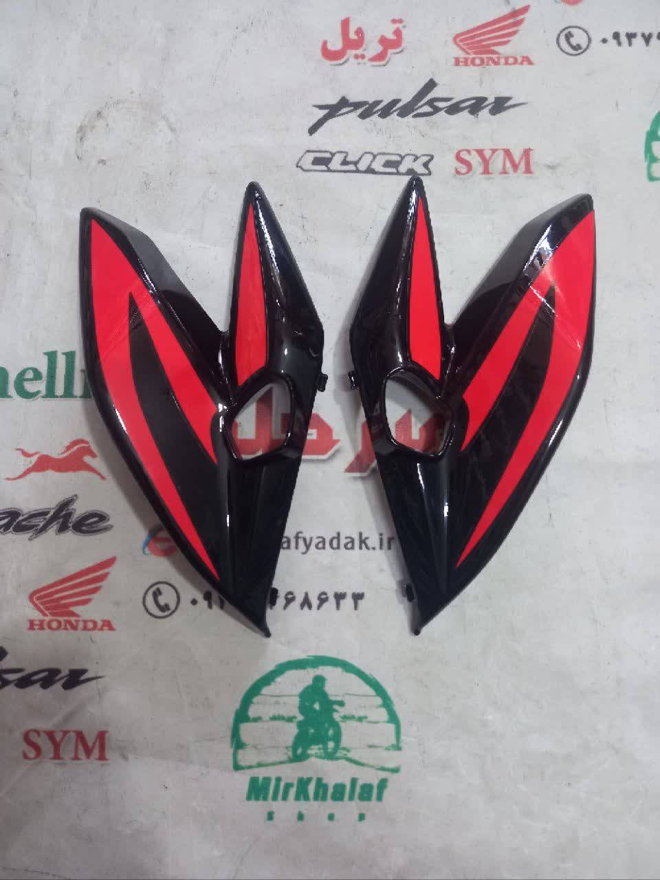 قاب (کاور فلاپ) گوشواره بغل بلوری چراغ جلو موتور اپاچی 200 جدید نیوفیس مشکی اصلی (جفتی)