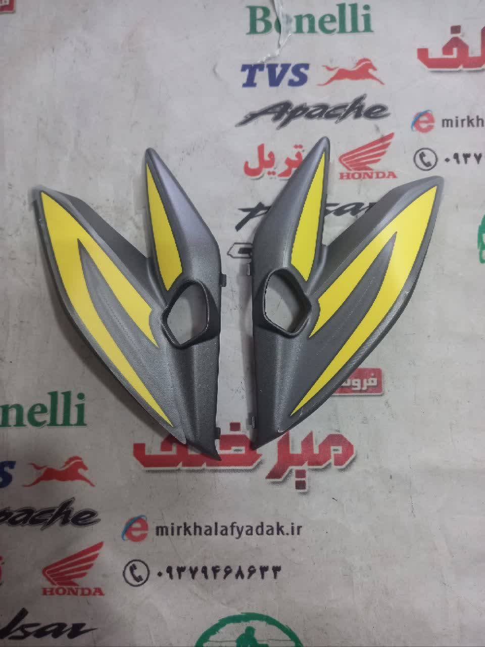 قاب (کاور فلاپ) گوشواره بغل بلوری چراغ جلو موتور اپاچی 200 جدید نیوفیس طوسی مدادی اصلی (جفتی)